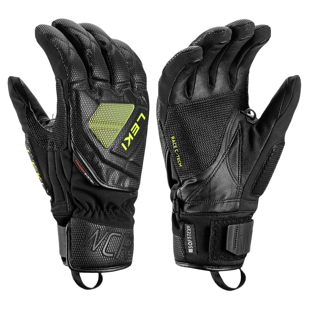 The Leki WCR C-Tech 3D Glove is engineered for elite ski racers who demand precision, warmth, and protection. Featuring Thinsulate™ and Hyperloft insulation with a waterproof SOFT-TEX® membrane, this glove keeps hands warm and dry in all conditions. Flexible EVA pads with ceramic reinforcement shield against gate impacts while maintaining a lightweight, race-ready feel. Silicone grip patches on the palm deliver excellent pole control and a secure connection. With a pre-curved race fit and Trigger System integration, the WCR C-Tech 3D is built for peak performance and confidence on the course.