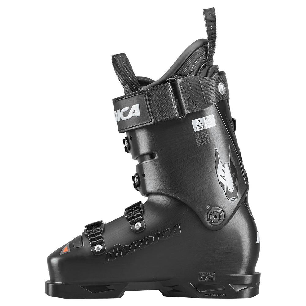 Consequently, Nordica didn’t just revolutionize the Dobermann’s shell; they also reimagined its cuff. Using Tri-Force construction, they created a cuff that showcases both an incredibly strong spine and a smooth flex that can readily be customized to control the delivery of power. This amplifies support and accelerates response, allowing you to unleash your full potential. Yet they didn’t overlook aesthetics. Stemming from the complementary densities of plastics used in the shell, the red eyes–contrasted against the boot’s black shell–give a nod to the Dobermann’s namesake. Fast and fearless, this Dobermann holds nothing back.